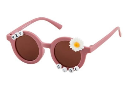 UV400 toddler sunglasses feature letter bead sentiment frames. Ages 3+.