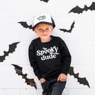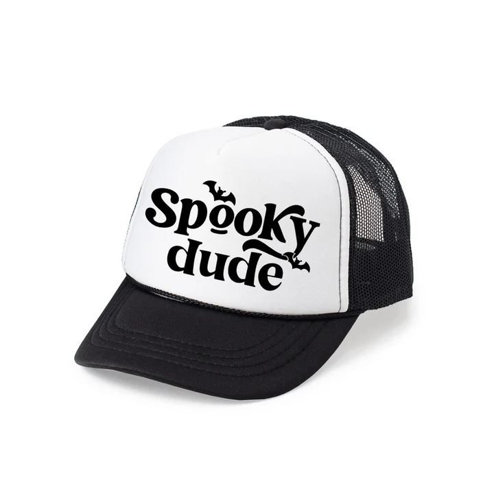 The Spooky Dude Halloween Trucker Hat for kids is a fun and festive accessory for celebrating Halloween!