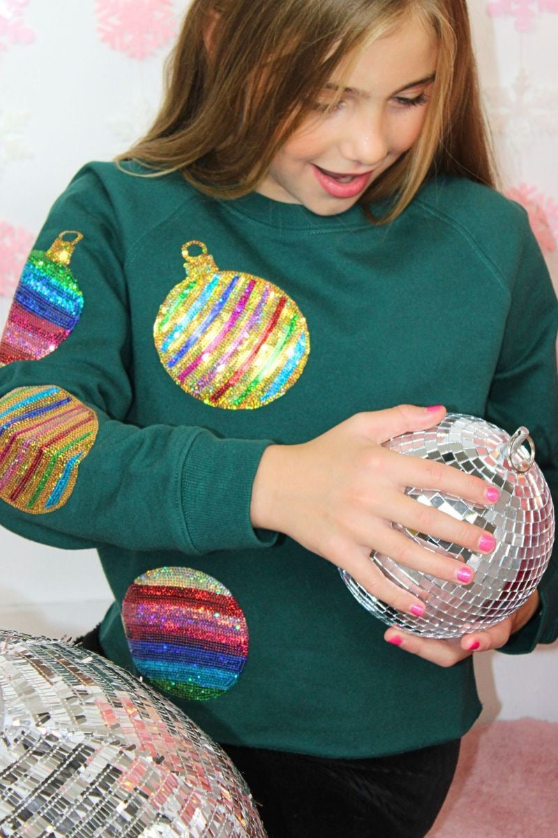 All Over Sequins Christmas Ornament Crop Sweatshirt