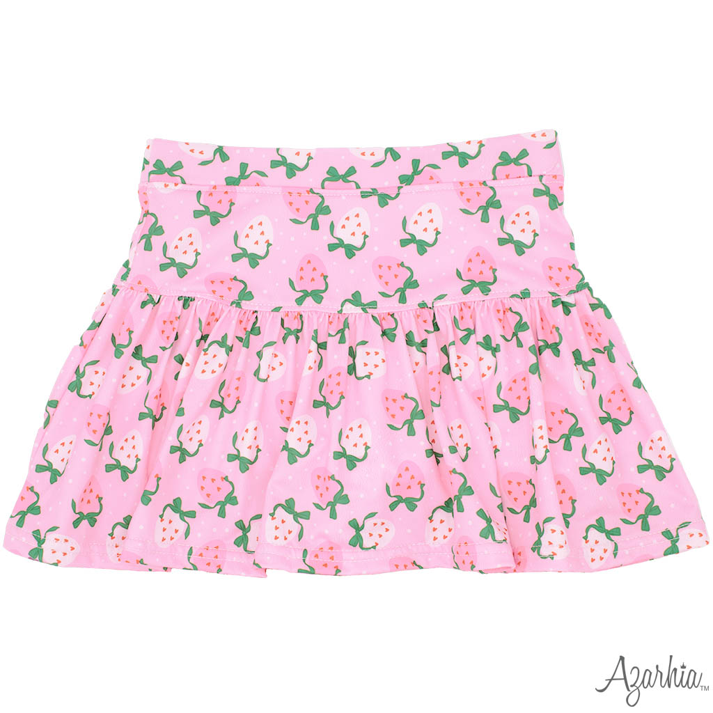 Gathered Skort in Strawberry Hearts Valentines