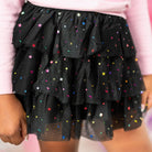 - Black tulle accented with multicolor sequin stars, moon and pin dots.