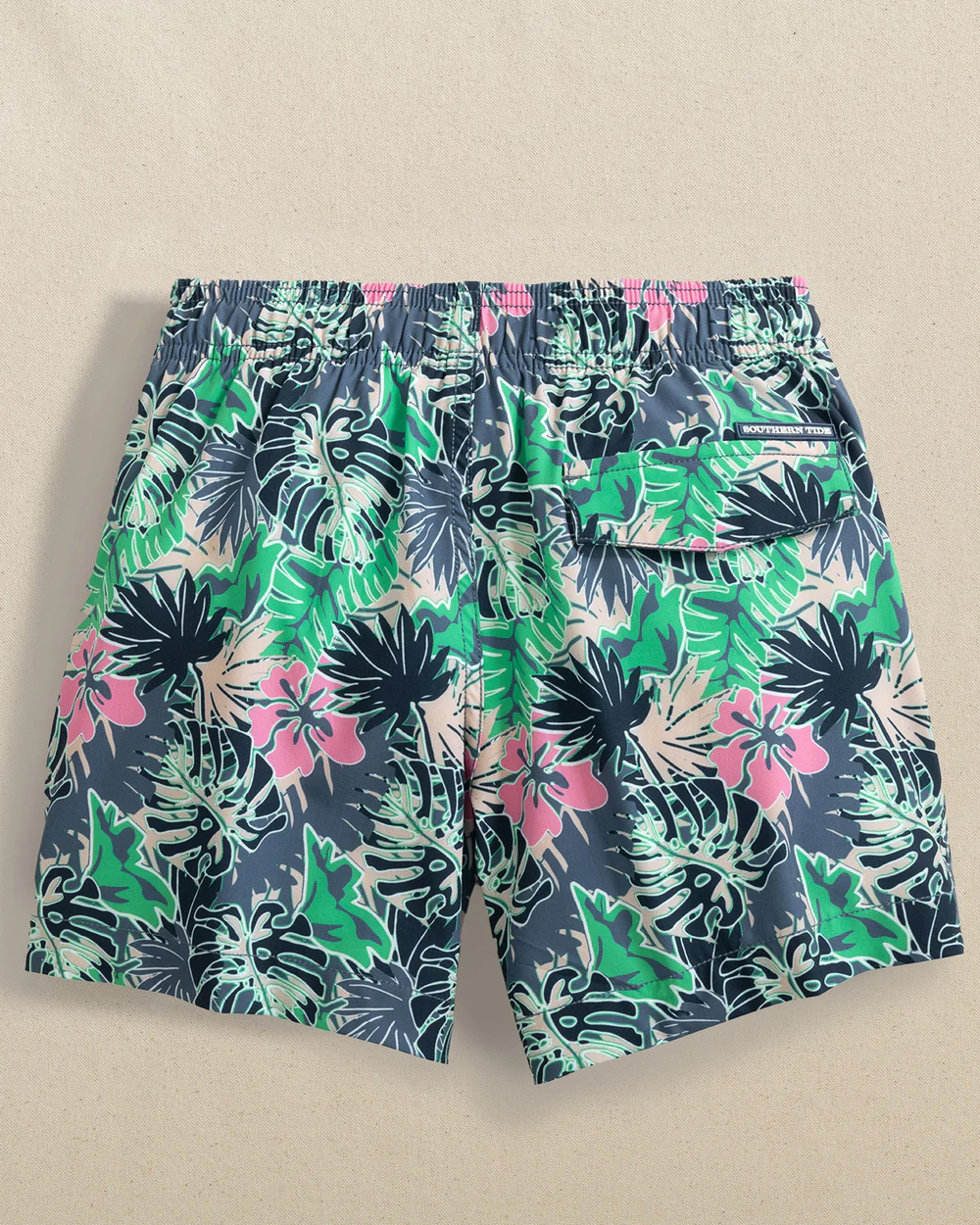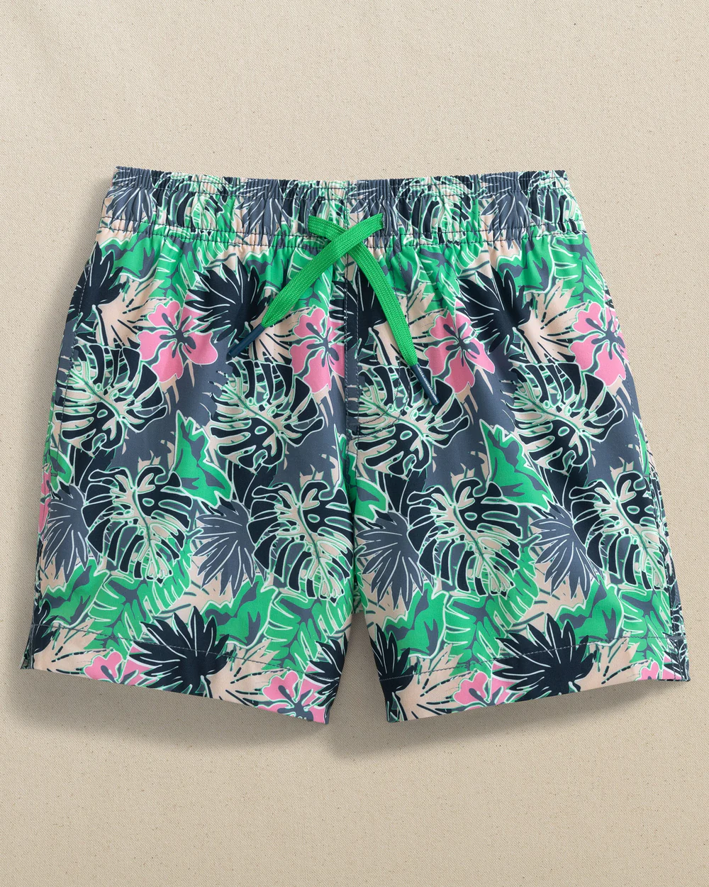 Get ready for sunny days and endless fun with the Boys Grand Palms Swim Trunk! Designed for young adventurers, these trunks feature a vibrant, tropical palm print that brings a burst of color and energy to any swim session.