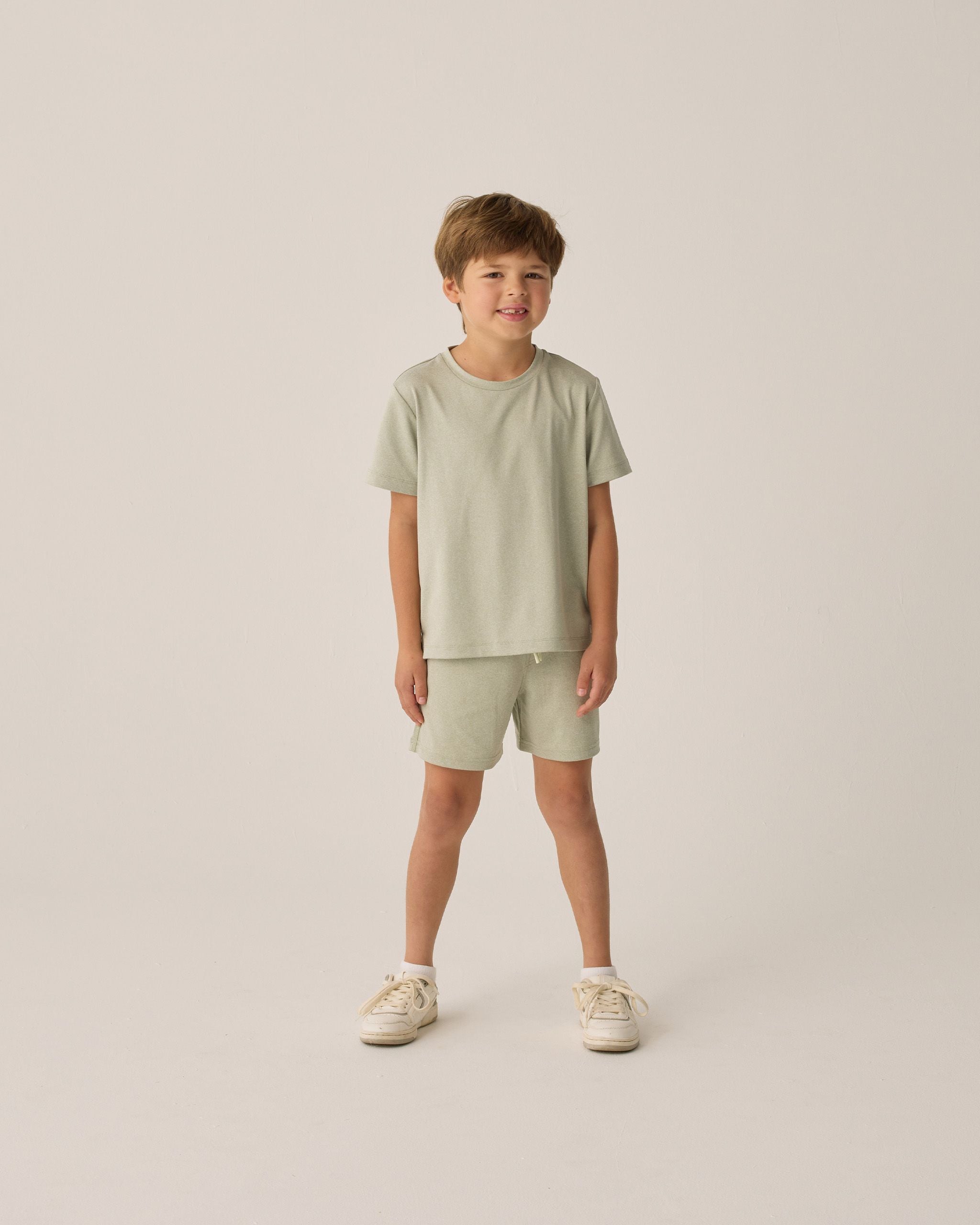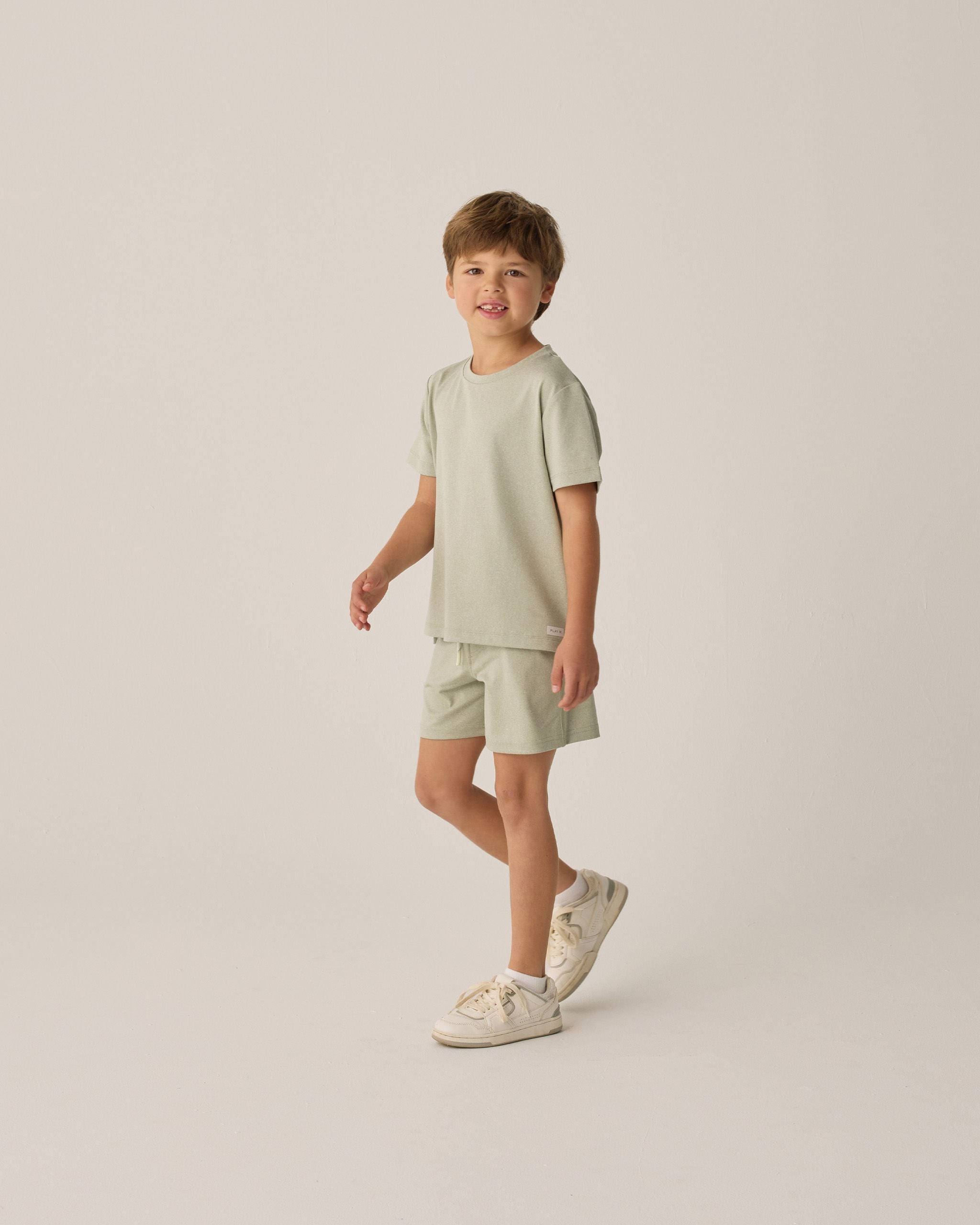 An everyday short featuring a classic elastic waistband, durable drawstrings, and zipper side pocket.