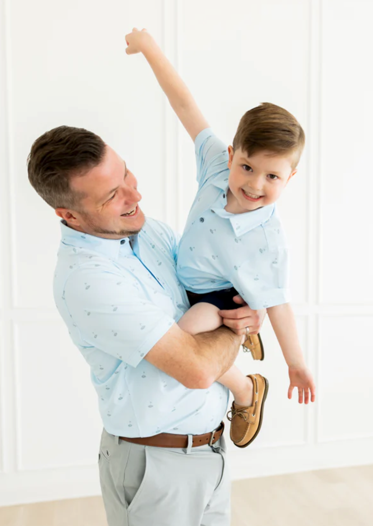 - Four-way stretch, moisture-wicking, easy-care benefits