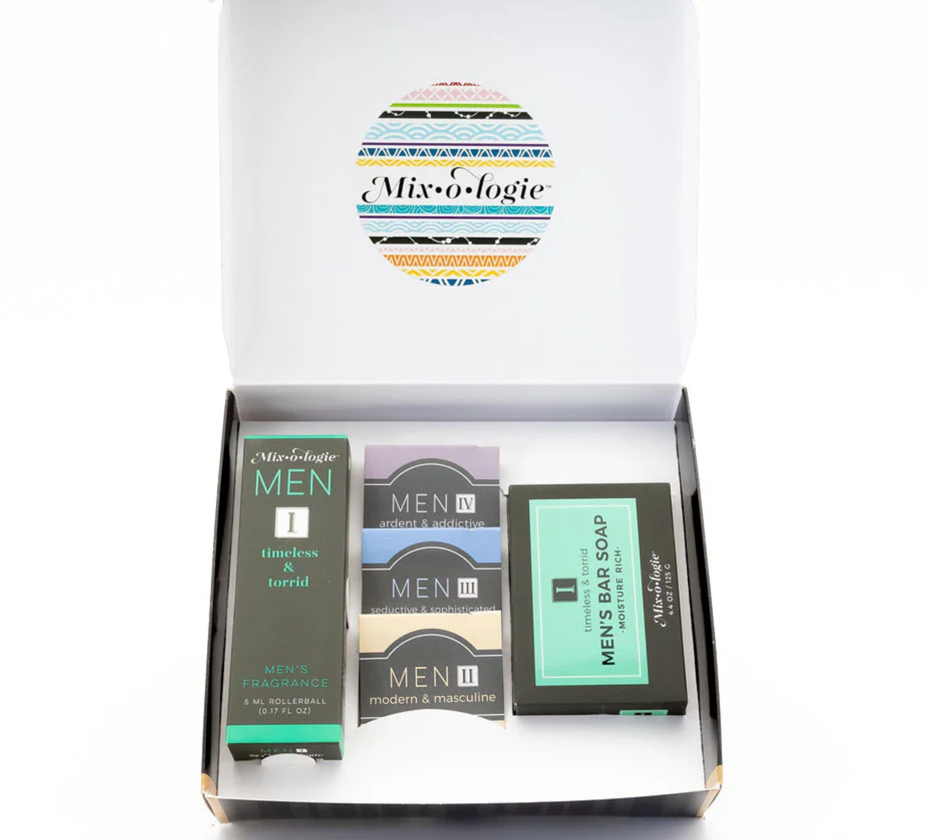 Men's Cologne (Full Size 5 mL) + Matching Bar Soap + 3 Cologne Samples in a stylish Gift Box