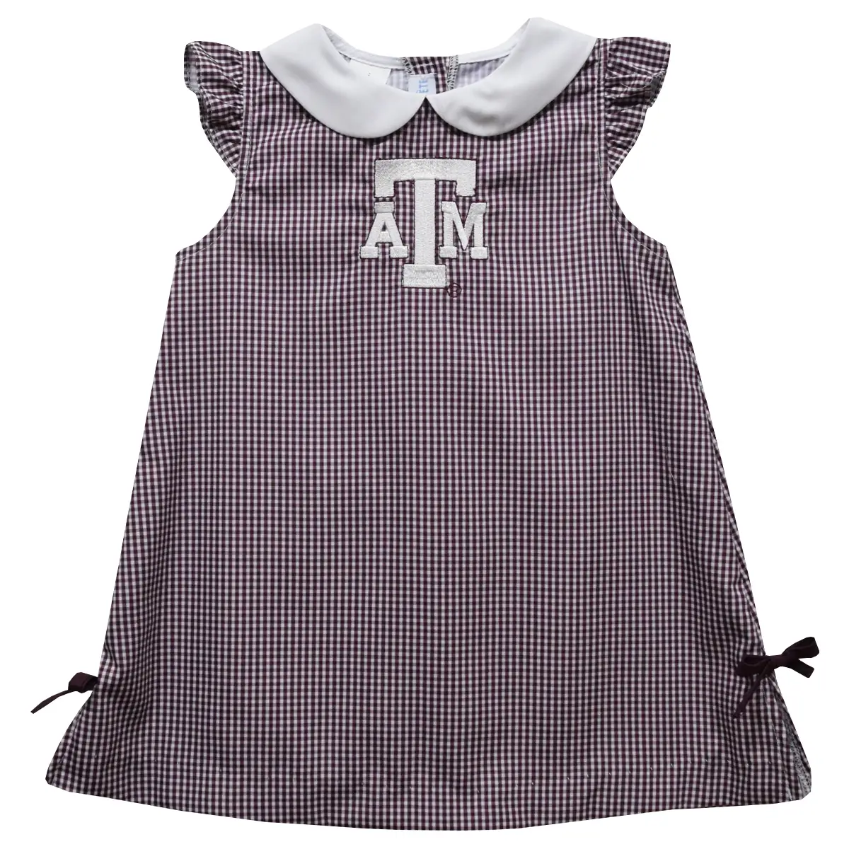 Texas Am Aggies Embroidered Maroon Gingham A Line Dress