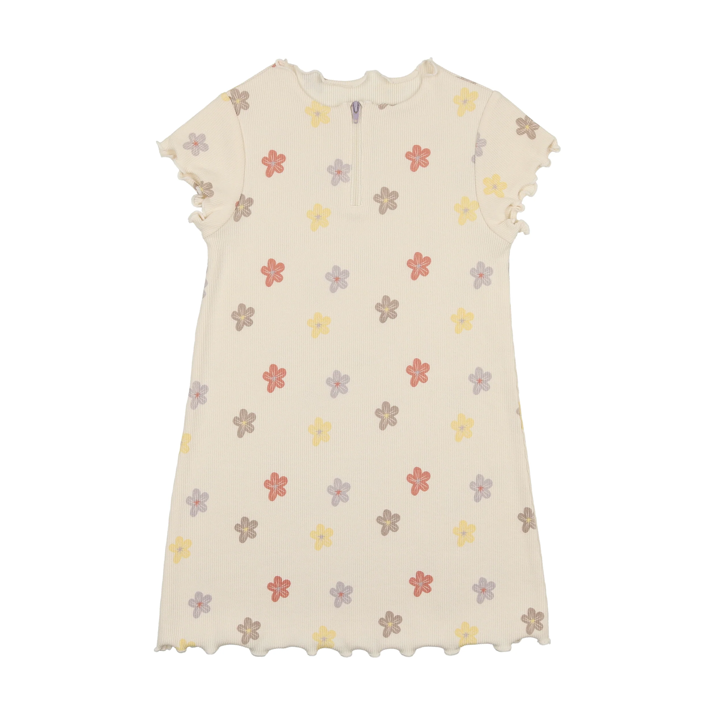 Floral Ribbed Short Sleeve Dress || Beige