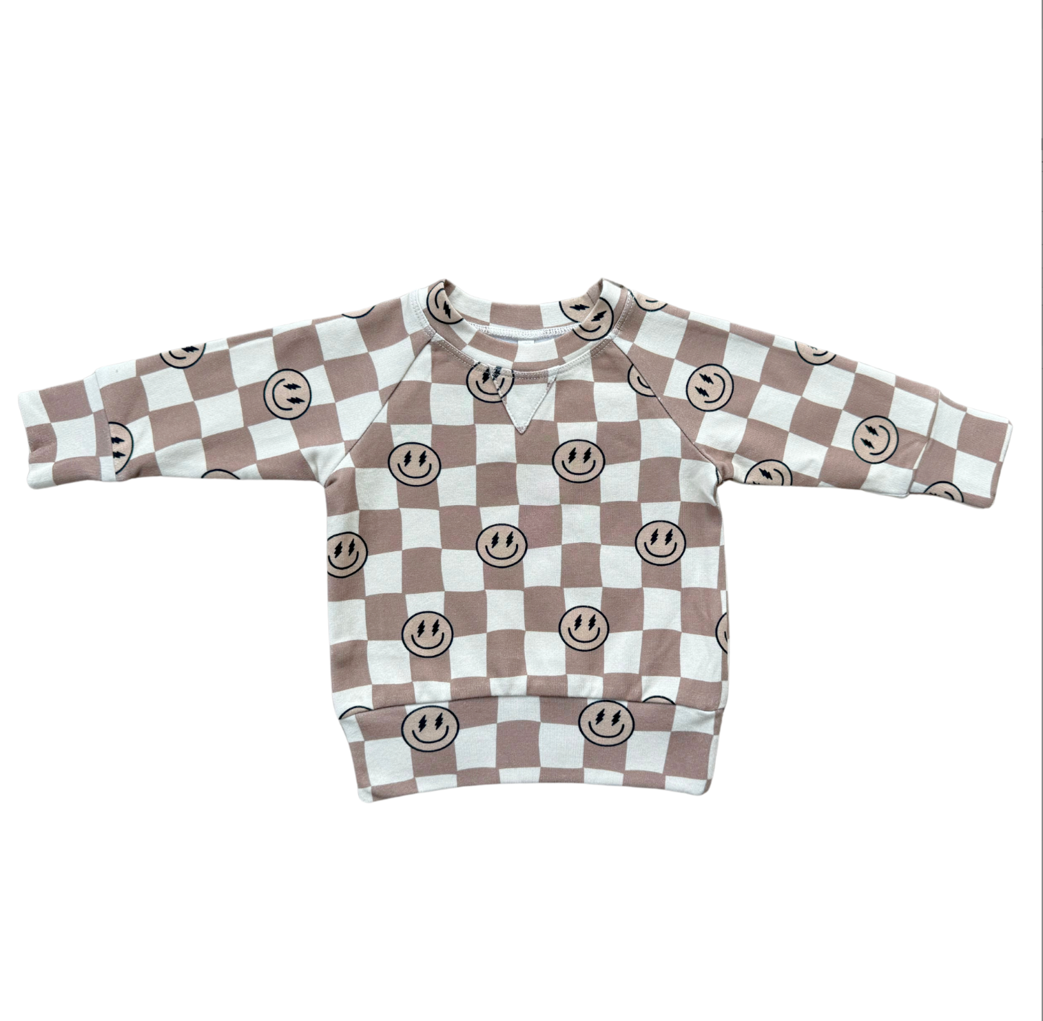 Boy's Raglan Sweatshirt | Smiley Check In Portabella