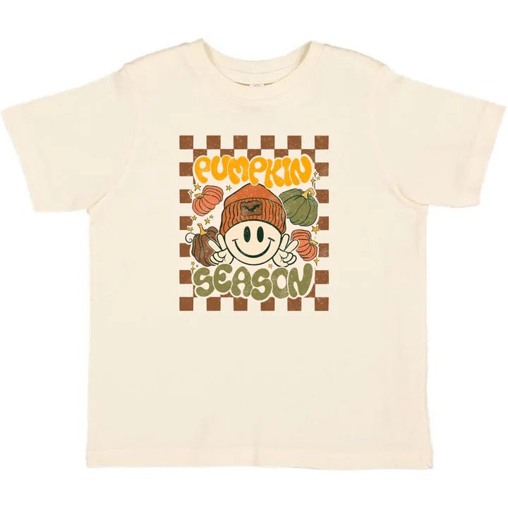 The Pumpkin Season Short Sleeve T-Shirt is a fun and festive t-shirt for kids celebrating Fall!