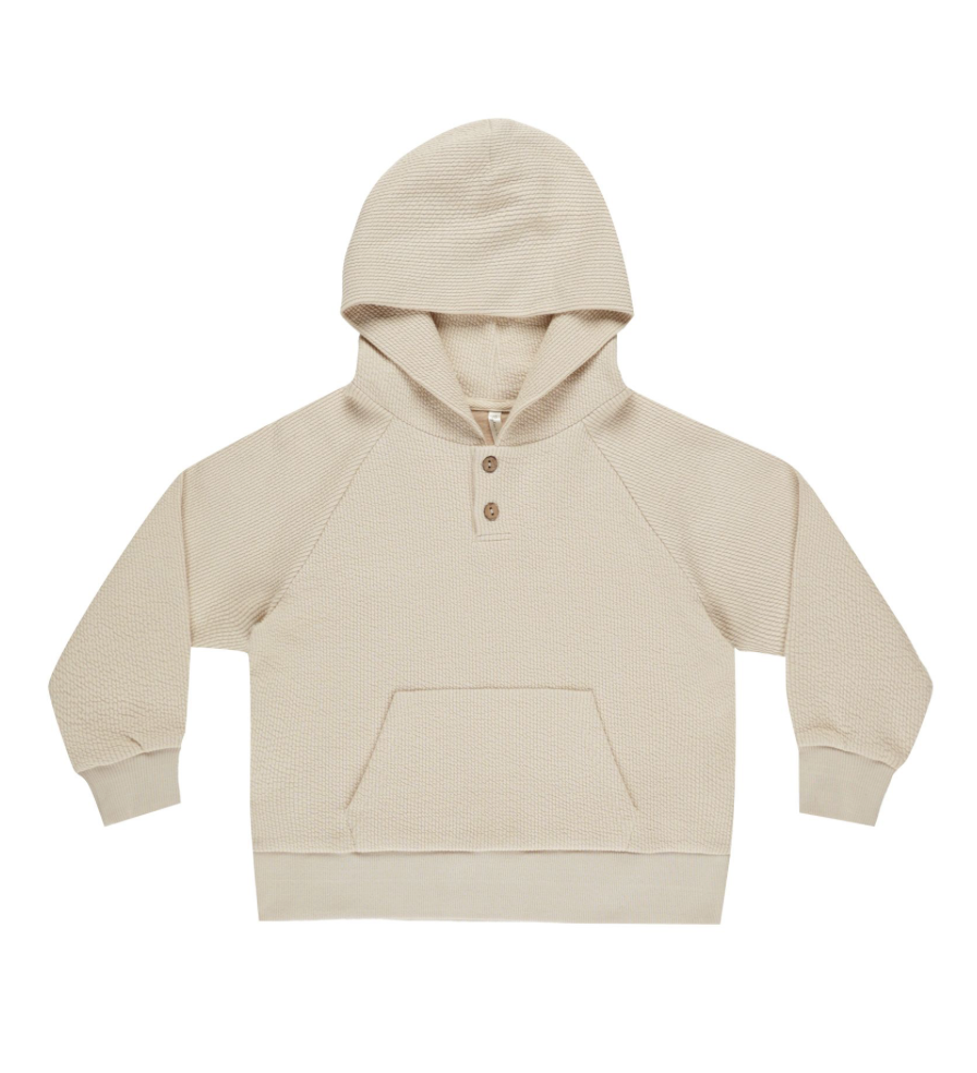 Relaxed fit henley hoodie in soft and cozy textured knit sweatshirt fabric.