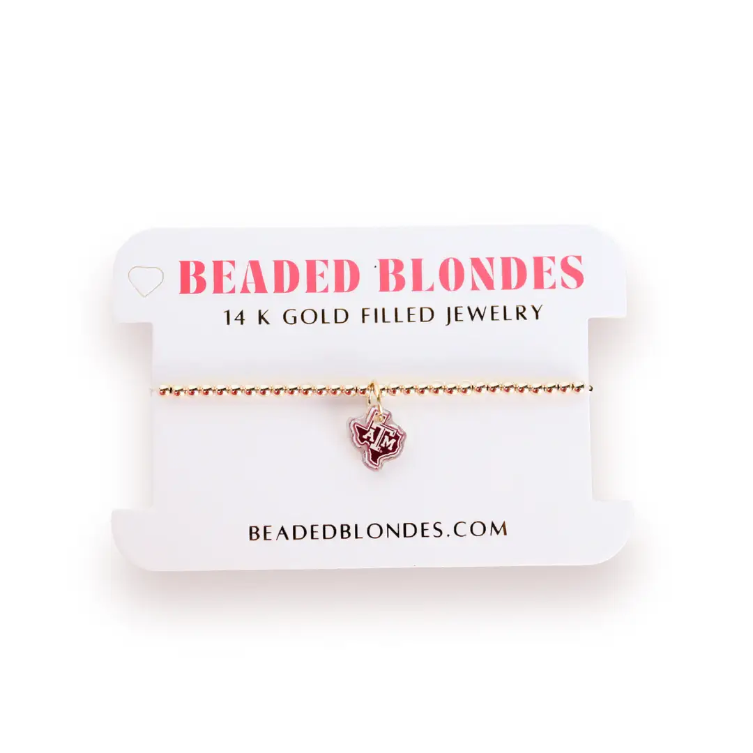 Show your Aggie spirit with our CLC Licensed A&M Charm bracelet! Perfect for game days or as a gift for a Texas A&M fan.