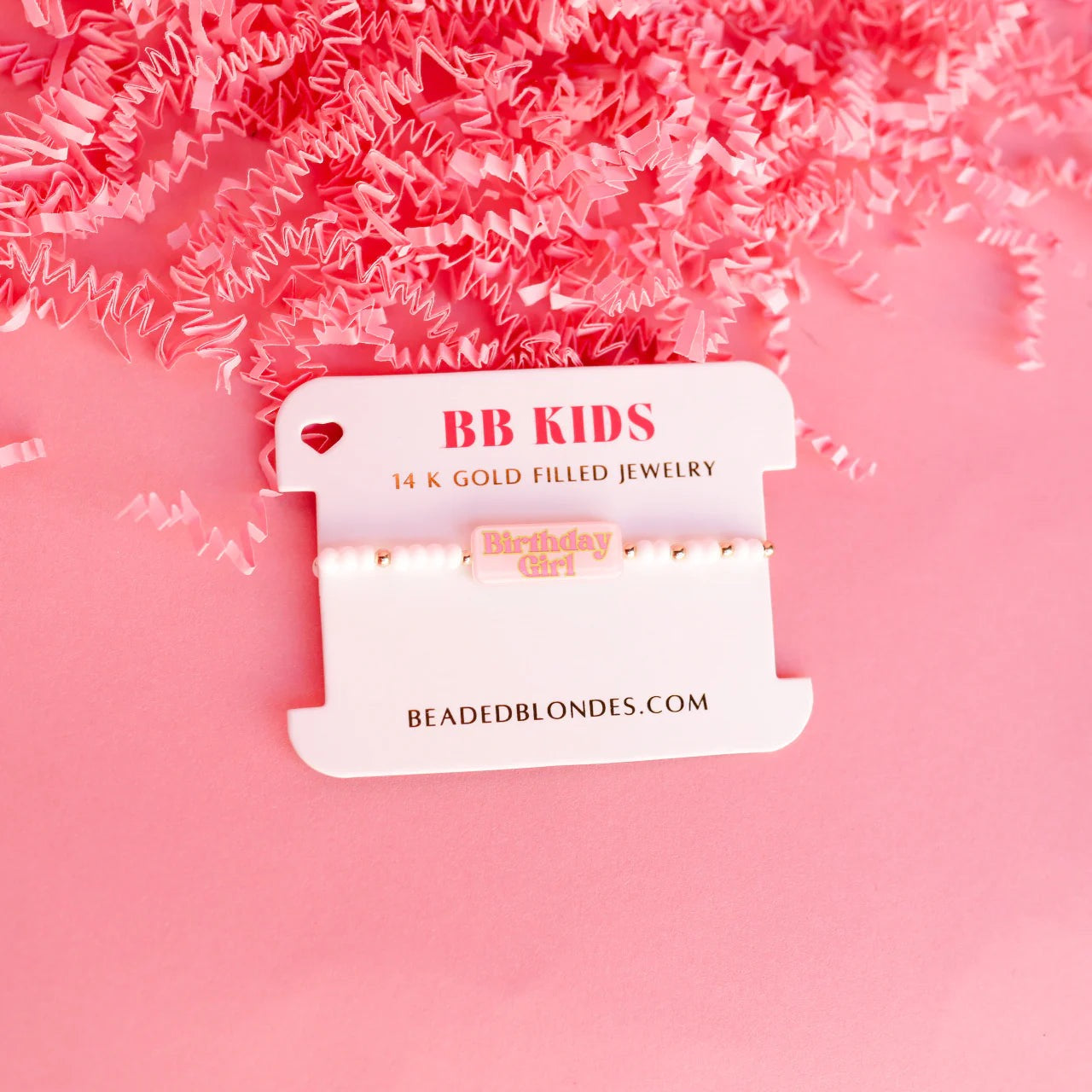 Birthday Girl beaded bracelet. Our signature 14 K gold filled beaded bracelets with custom made beads.  Kids size 5.5 inch.