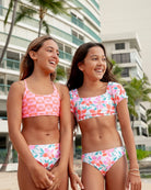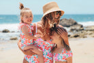 Sweet, puff sleeve bikini. Top can be worn on or off shoulder. Match it with the whole family!