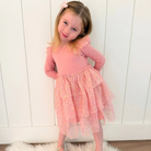 The Blush Shimmer Christmas Long Sleeve Tutu Dress is the perfect twirl-worthy dress for celebrating Christmas!
