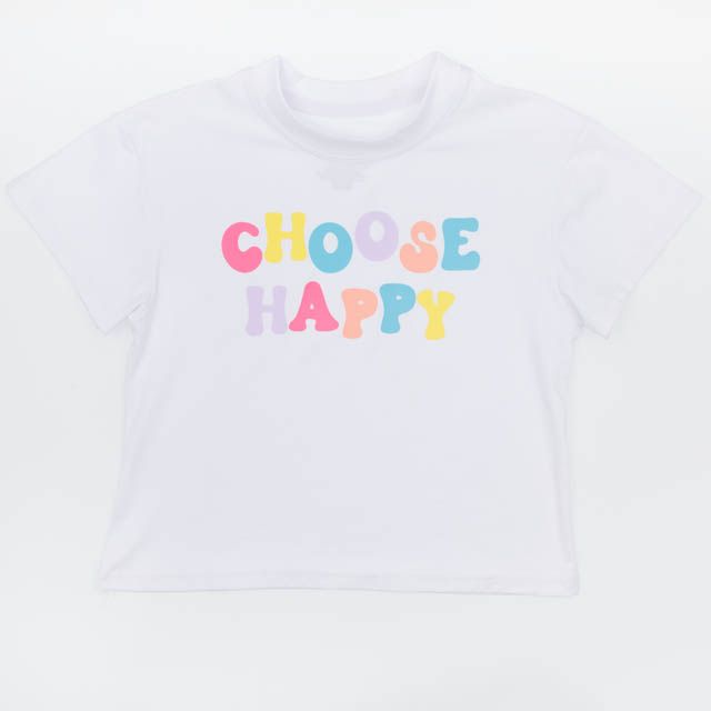 Choose Happy Screen Print on White Boxy T'