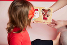 Wooden puzzle with knob handle. Lift pieces to reveal baby's reflection with surprise character features! Ages 18M+.