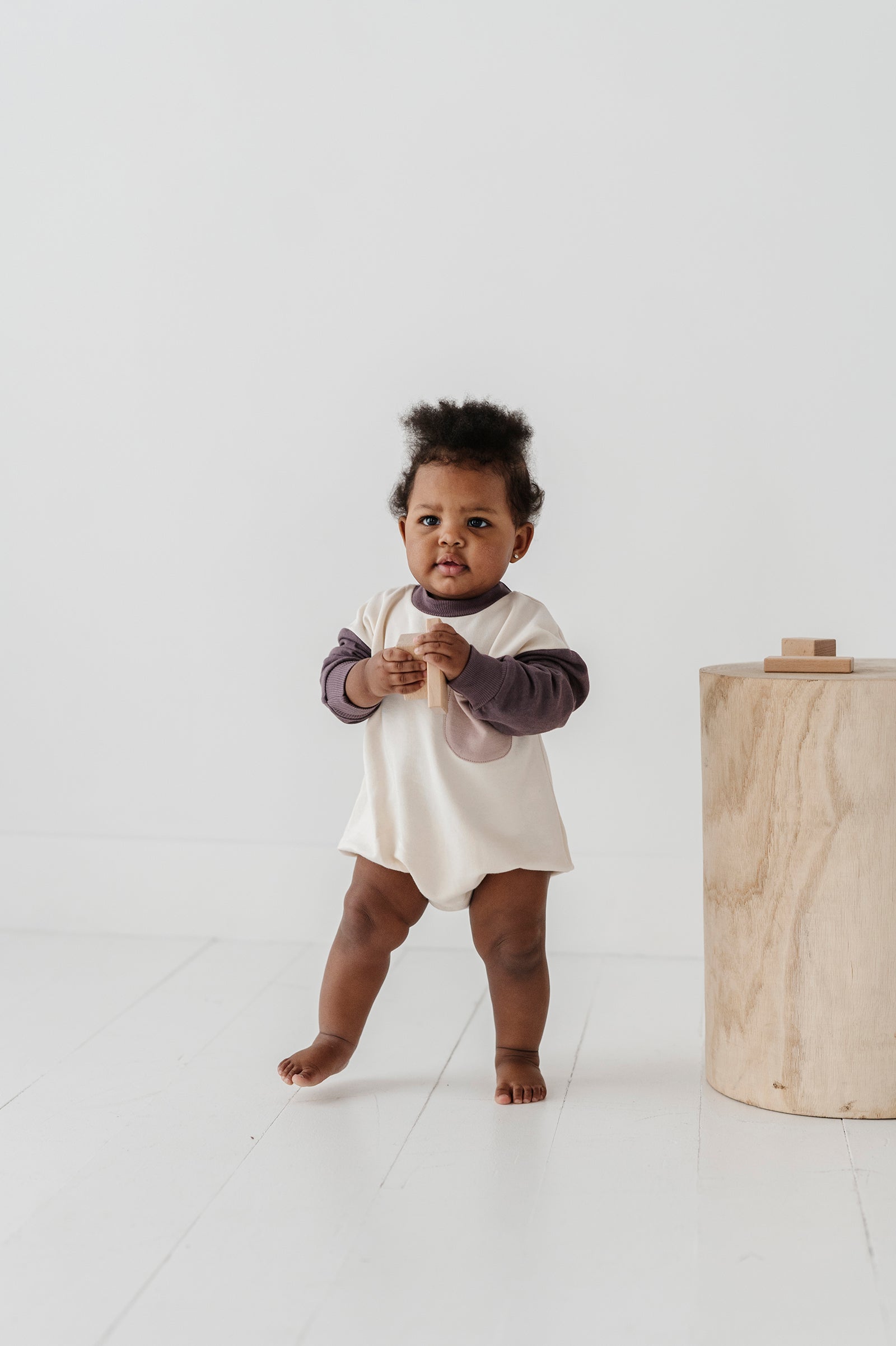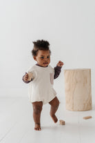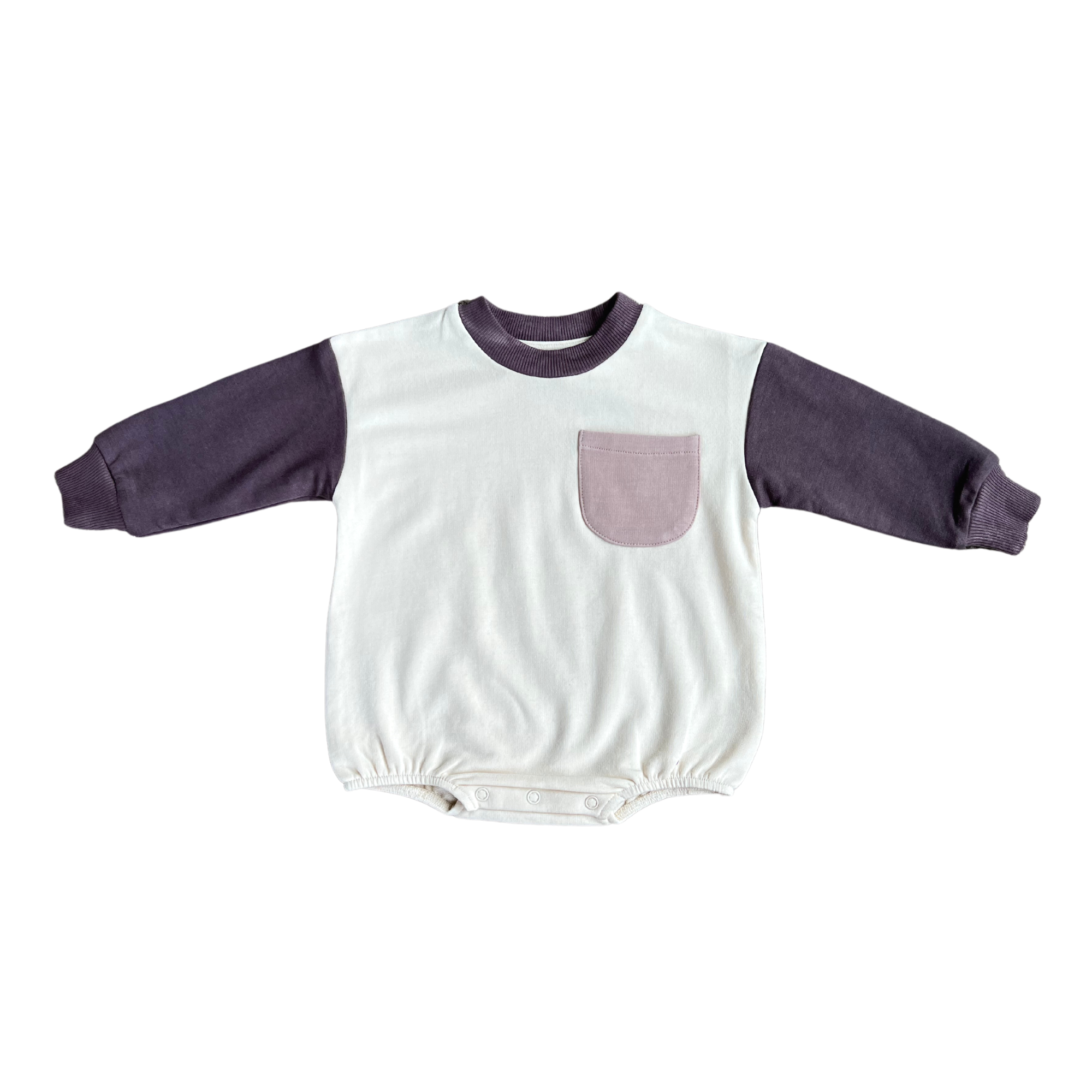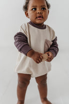 Our Colorblock Romper is one of our customer's favorites! The Romper features 3 colors that coordinated with our entire collection. The body is a bubble-style oversized fit and snaps are featured in the bottom for easy diaper changes. Made with our premium bamboo terry fabric. Designed in the US | All colors and designs are exclusive to Babysprouts Clothing Co