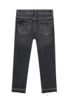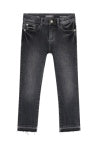 Tornado is a washed black. It features brushed gold hardware, light khaki stitching and a released raw hem.