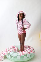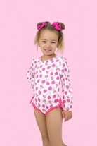 Ready for sunshine and waves? The Dream Rash Guard Ruffle Swim Suit will make your little one feel like a real-life fashionista! The adorable ruffles and bows on each side give it a fun finish, while the long sleeves with UPF 50+ coverage will keep your explorer protected. This swim suit will have them making a splash all summer long in style.