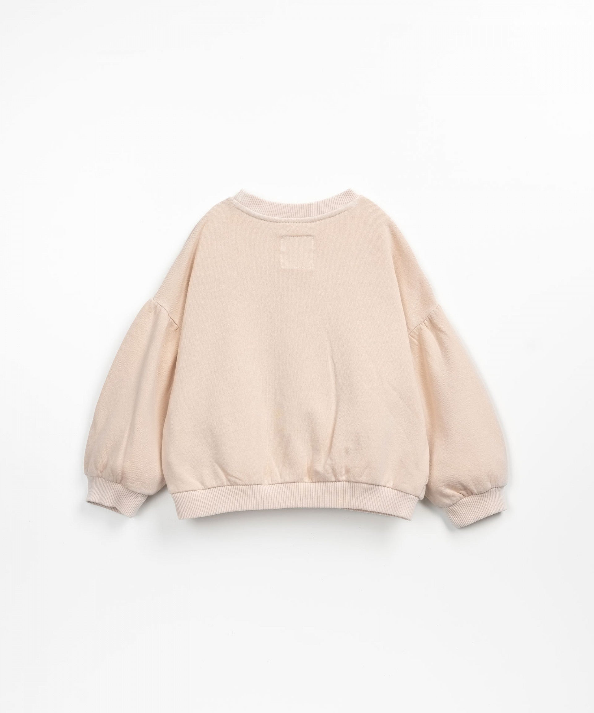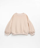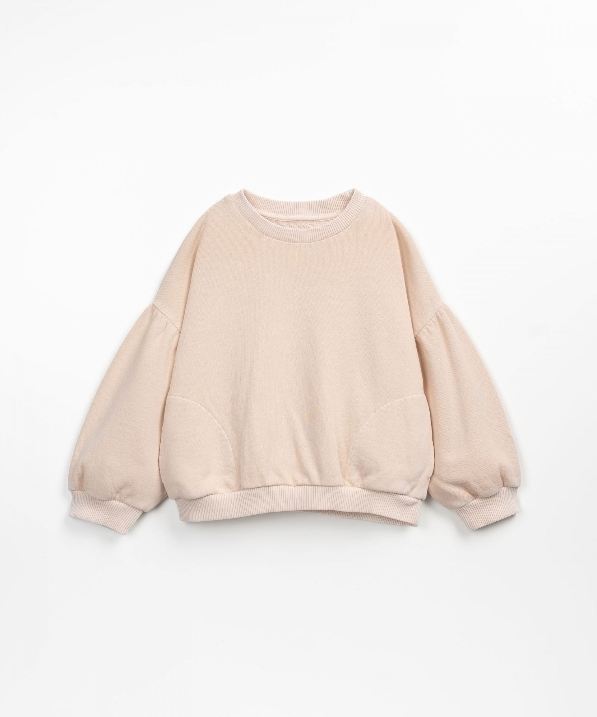 This jersey-stitch sweater is made of a mixture of organic cotton and cotton, Slow colour. This model has long sleeves, a round neck, elastic cuffs and waist, and front pockets.