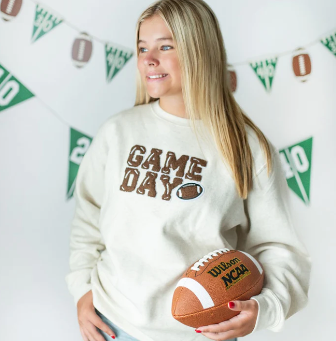 The Game Day Patch Adult Sweatshirt is a fun and cute sweatshirt for celebrating Game Day!