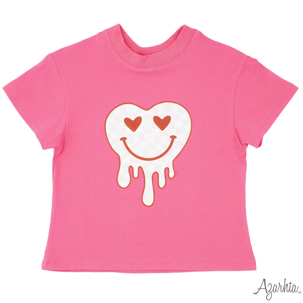 Glitter Drip Heart Smiley Hot Pink Boxy T'