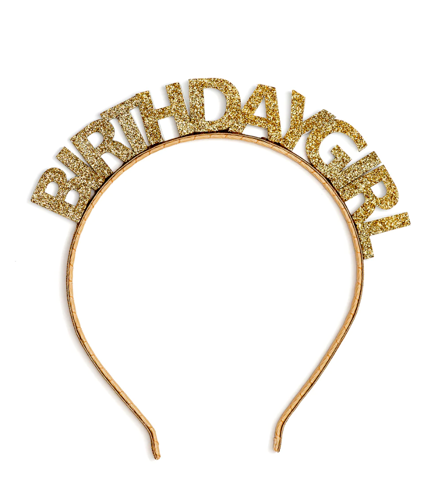 - Gold glitter "Birthday Girl" arching the top of the headband