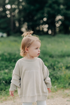 Same day shipment on orders placed in December! This 100% French Terry sweatshirt has been a customer favorite and most requested piece due to its oversized, cozy fit and its neutral color. We know it will be a piece that your customers will love to put their little ones in!