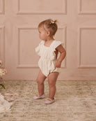 Our Lucy Romper features dainty criss-cross flutter sleeves and an elastic waistband at the back for a truly perfect fit. This sweet look is perfect for the upcoming spring season. Coordinates perfectly with our Lilibet Dress.
