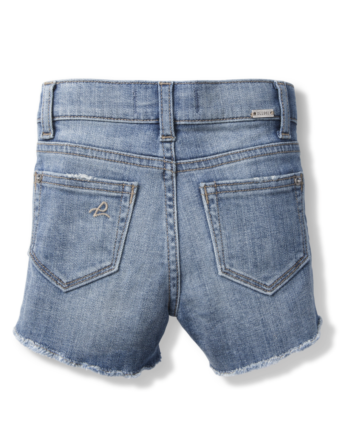 Sandcastle is a super soft and stretchy mid-indigo wash with raw hem, khaki stitching, silver hardware and authentic dry processing.