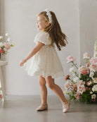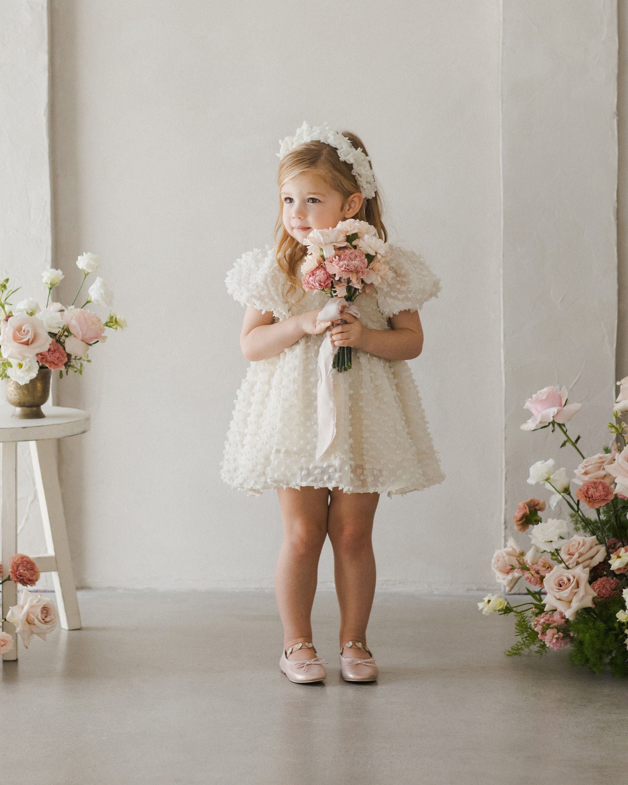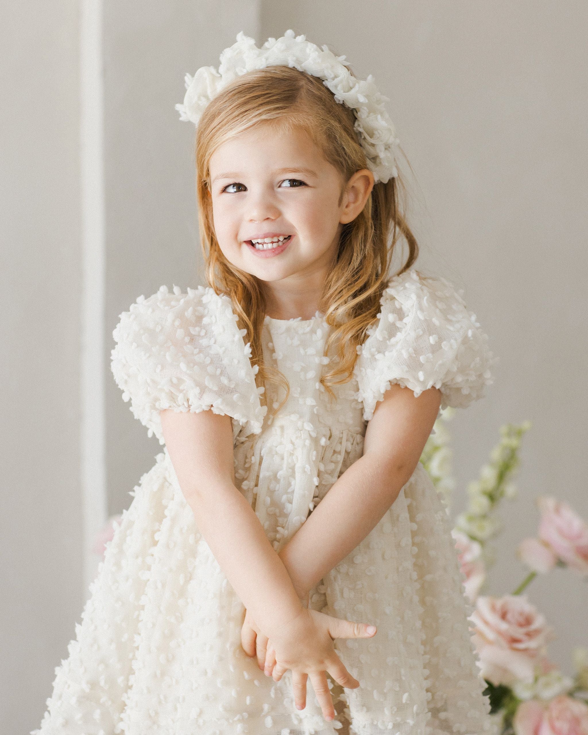 The Luna Dress features a babydoll inspired silhouette features pretty puff sleeves and a curved waistline in our fun popcorn woven fabric.
