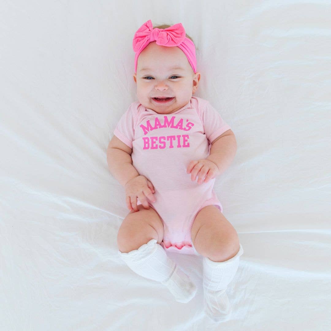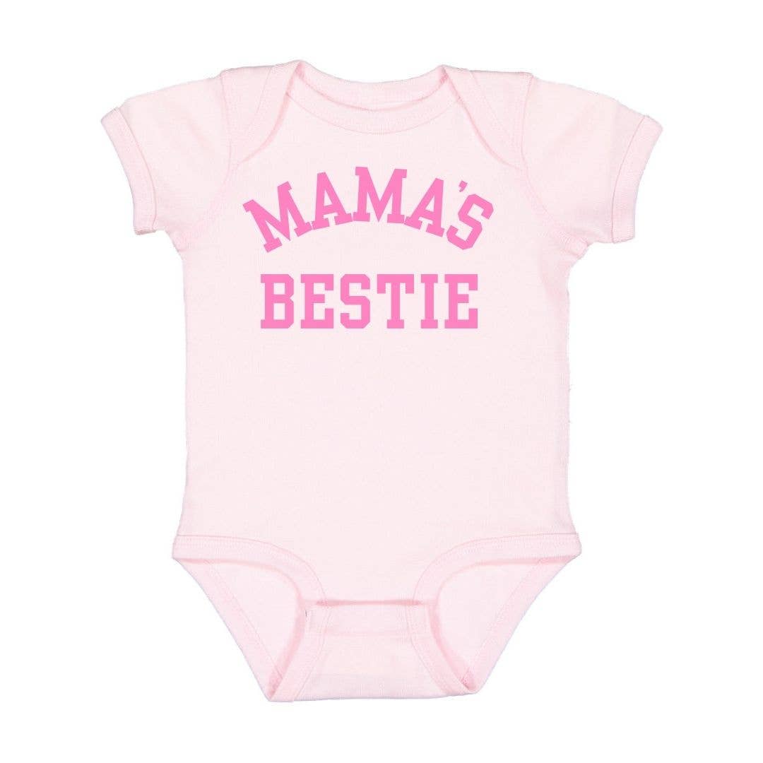 The Mama's Bestie Short Sleeve Bodysuit is a fun and cute bodysuit for babies celebrating Mother's Day or for showing love to Mom all year round!
