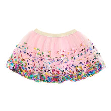 The Pink Confetti Tutu is a fun skirt and dress up tutu for celebrating birthdays, holidays or any day!