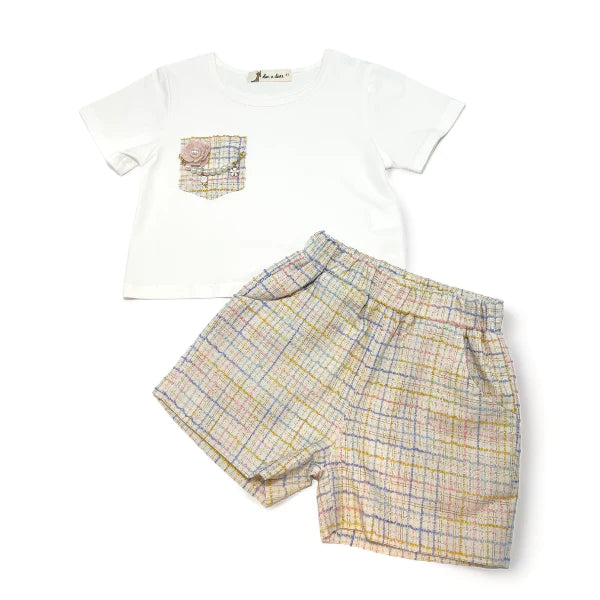 Crafted from chic tweed and a cute multicolor plaid pattern, these shorts will add a glam touch to your little girls every day shorts! The elastic waistband ensures comfort and a perfect fit! There is a matching tee that allows you to complete the look if desired.