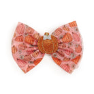 - Pumpkin daisy printed tulle bow with gold glitter pin dot accents