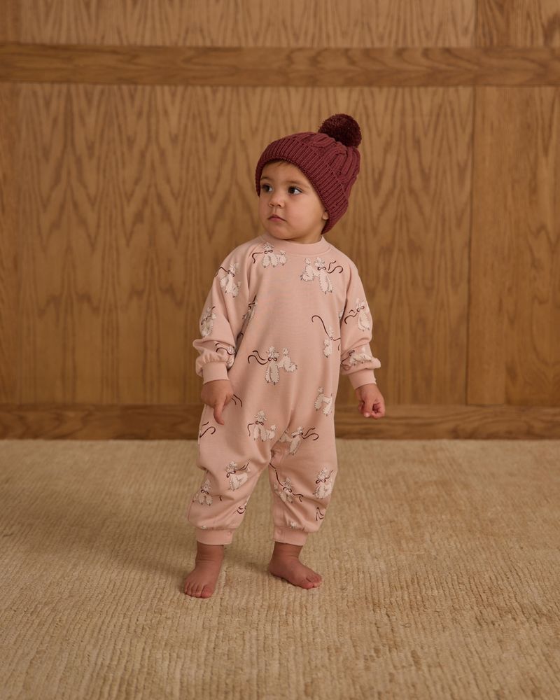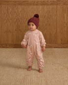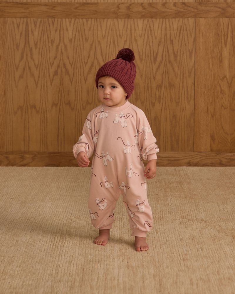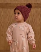 Crafted from soft French terry, this long sleeve bubble romper is as cozy as it is cute, featuring elastic leg openings and bottom snaps for a snug fit and easy changes.