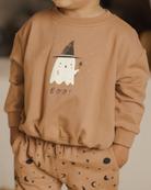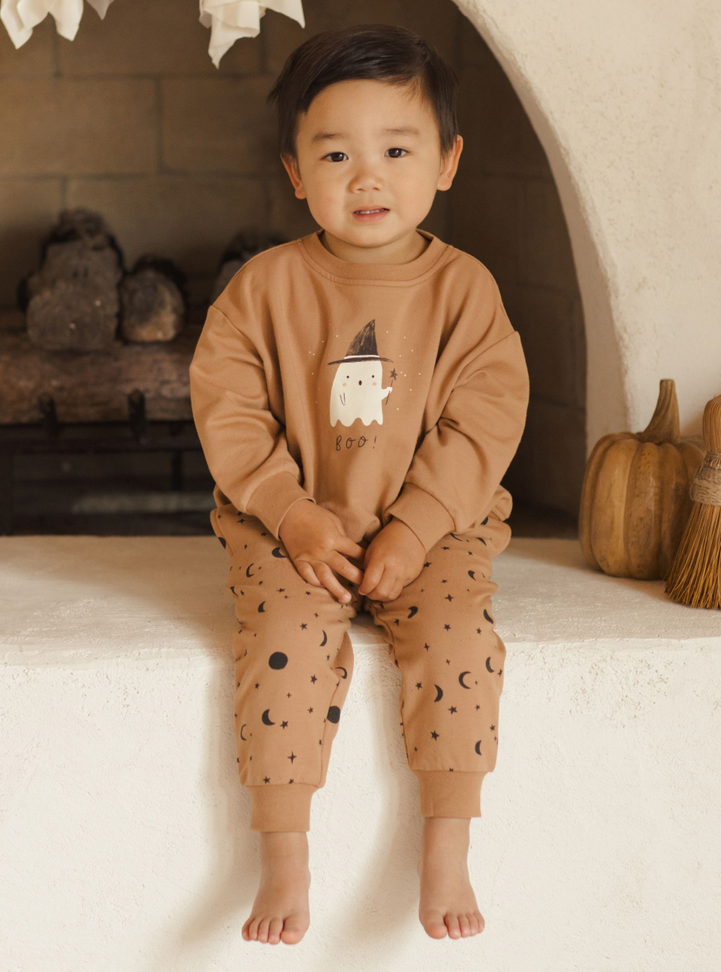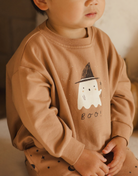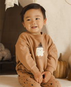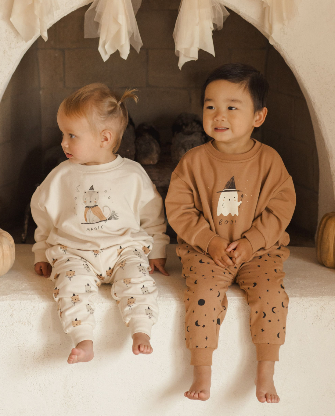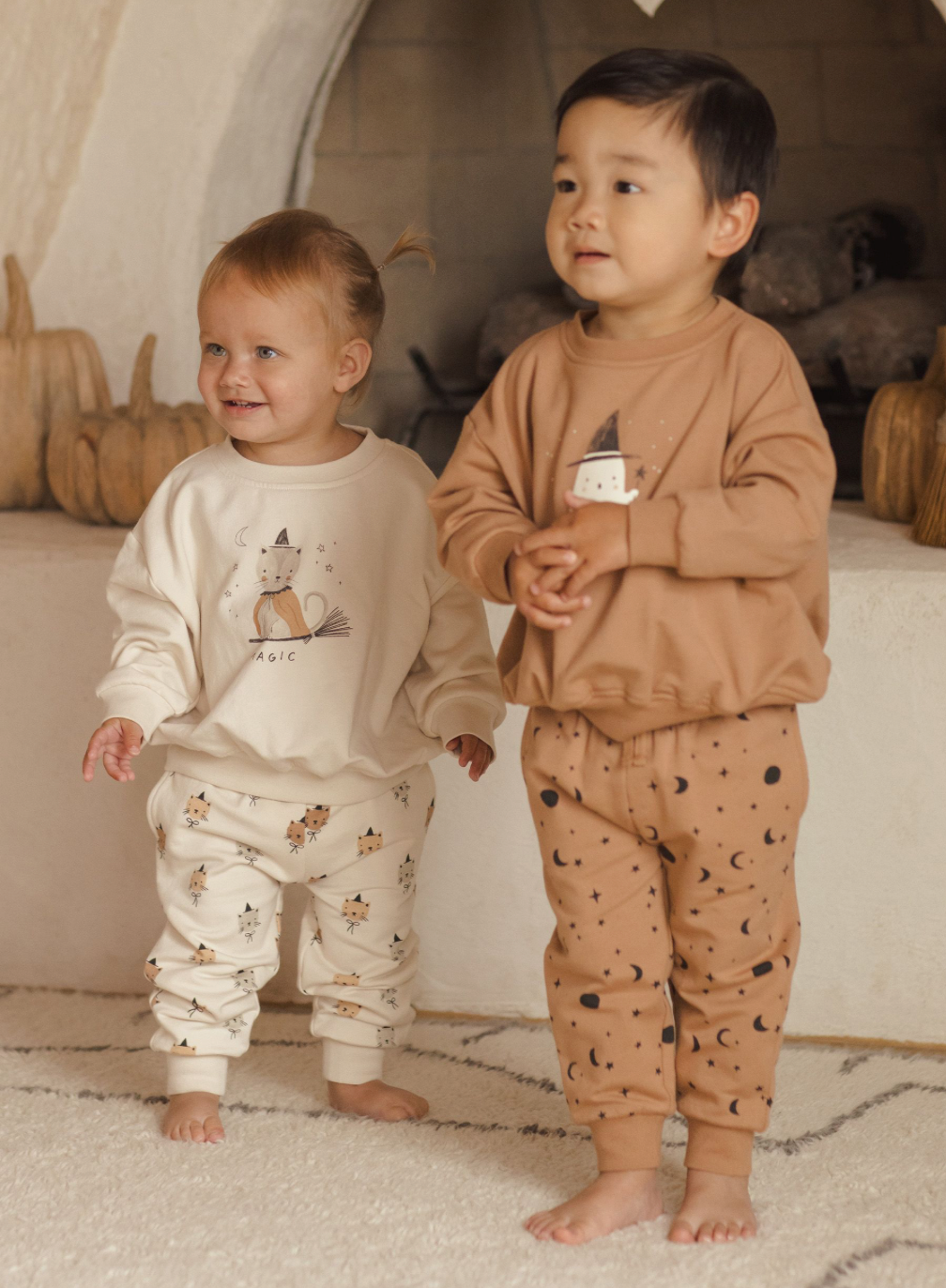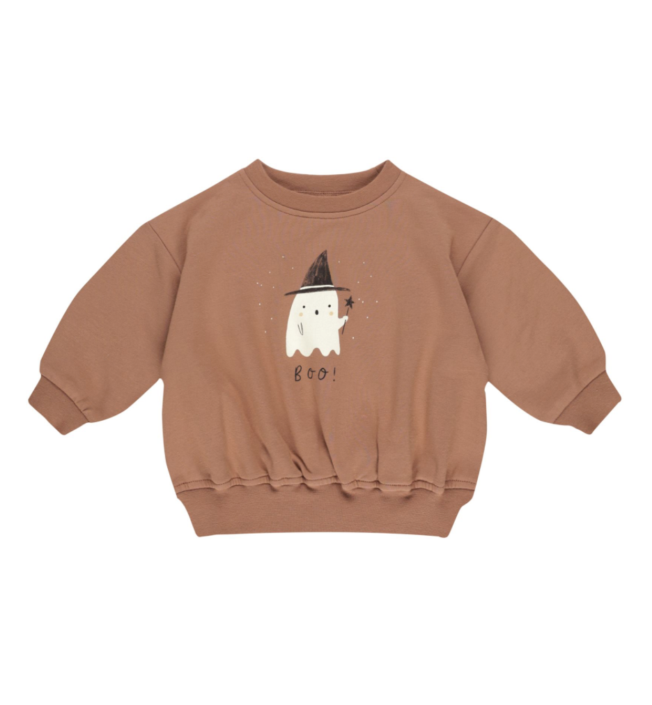 Relaxed fit sweatshirt made of the coziest fleece fabric. This sweatshirt has gathered knit cuffs and bottom opening.