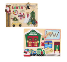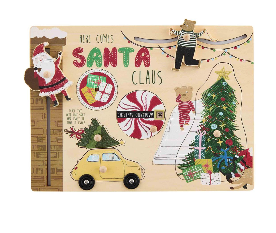 Wooden puzzle with knob handles features spinning, sliding and hinging hardware play. Ages 3+.