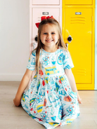 The perfect dress for school, special occasions, and everyday play! Designed by a mom and a dad. Mom wanted something twirly, comfortable and easy to wash. Dad wanted something easy to get on his chubby, big headed toddler. Designed with a scoop back for quick on and off, and higher neckline for modesty. Pair with Twirl Shorts or Leggings for the perfect everyday outfit.