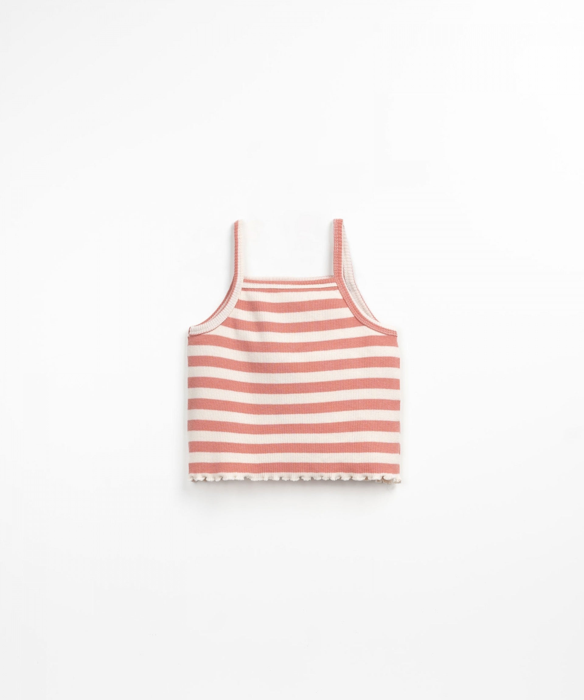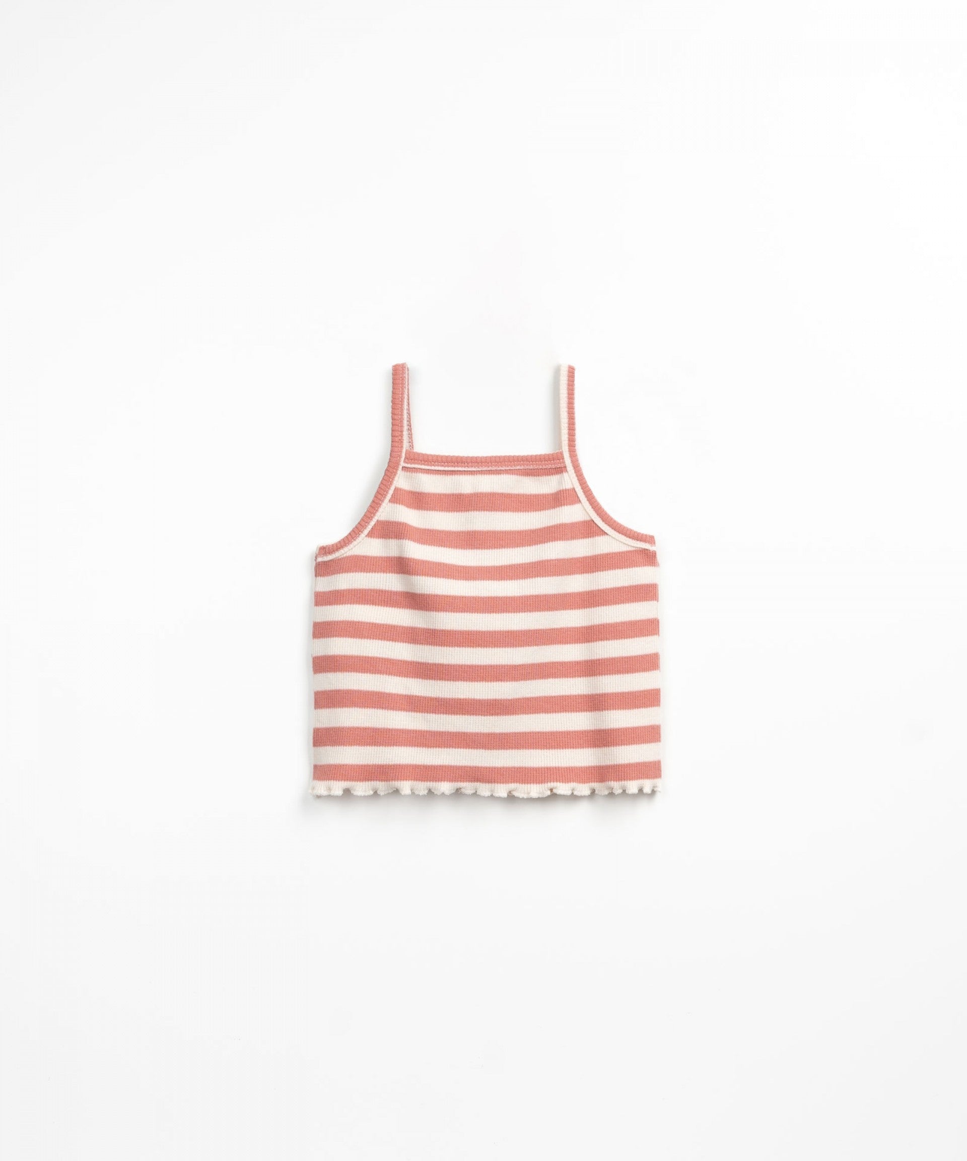 This striped jersey-stitch top is made of organic cotton . This is a slim-fit model with straps, a straight neckline and a rolled-up hem.