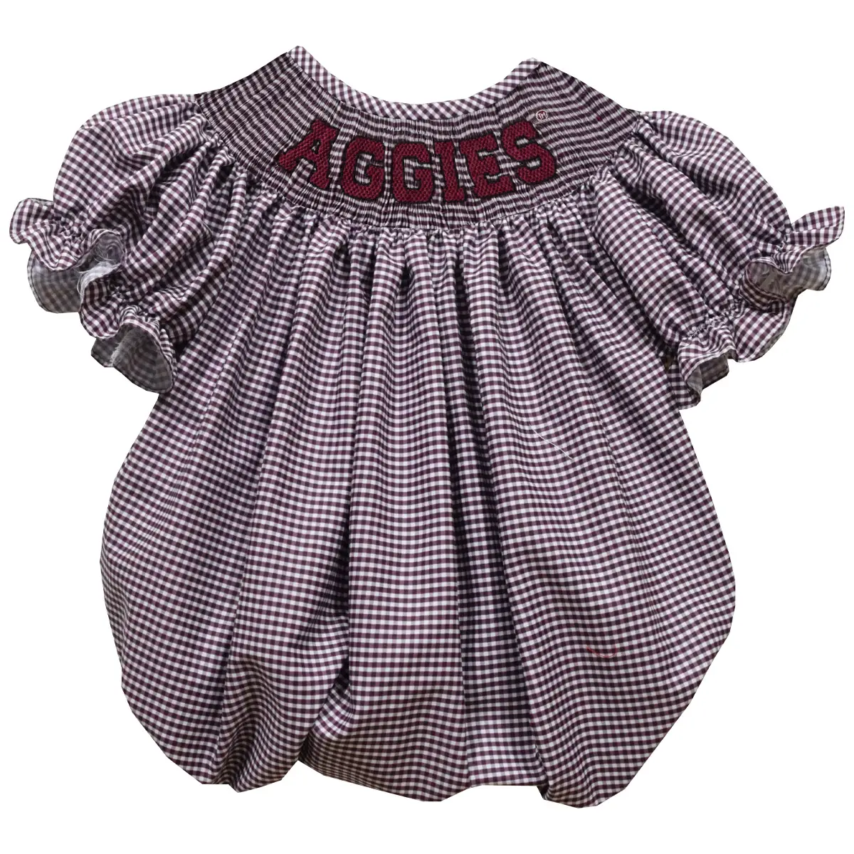 Texas Am Smocked Maroon Gingham Short Sleeve Girls Bubble