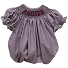 Texas AM Smocked Maroon Gingham Short Sleeve Girls Bubble
