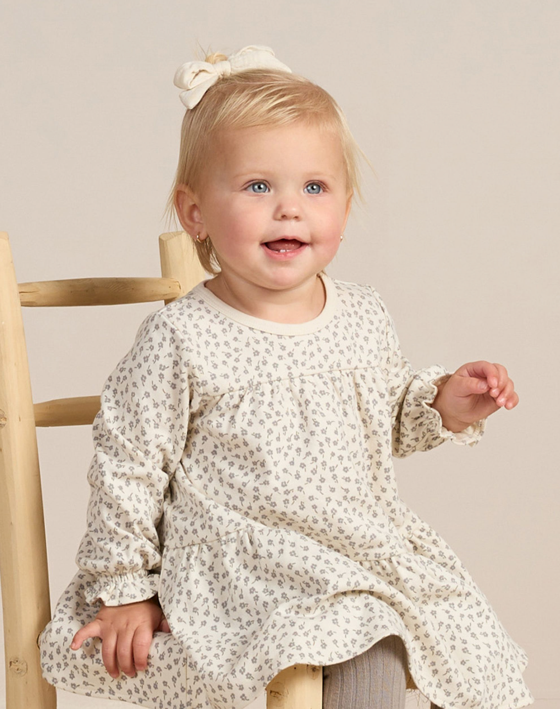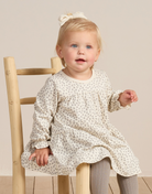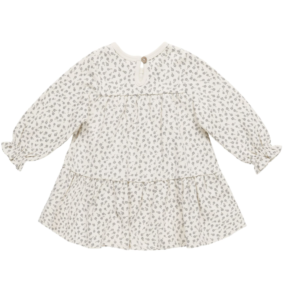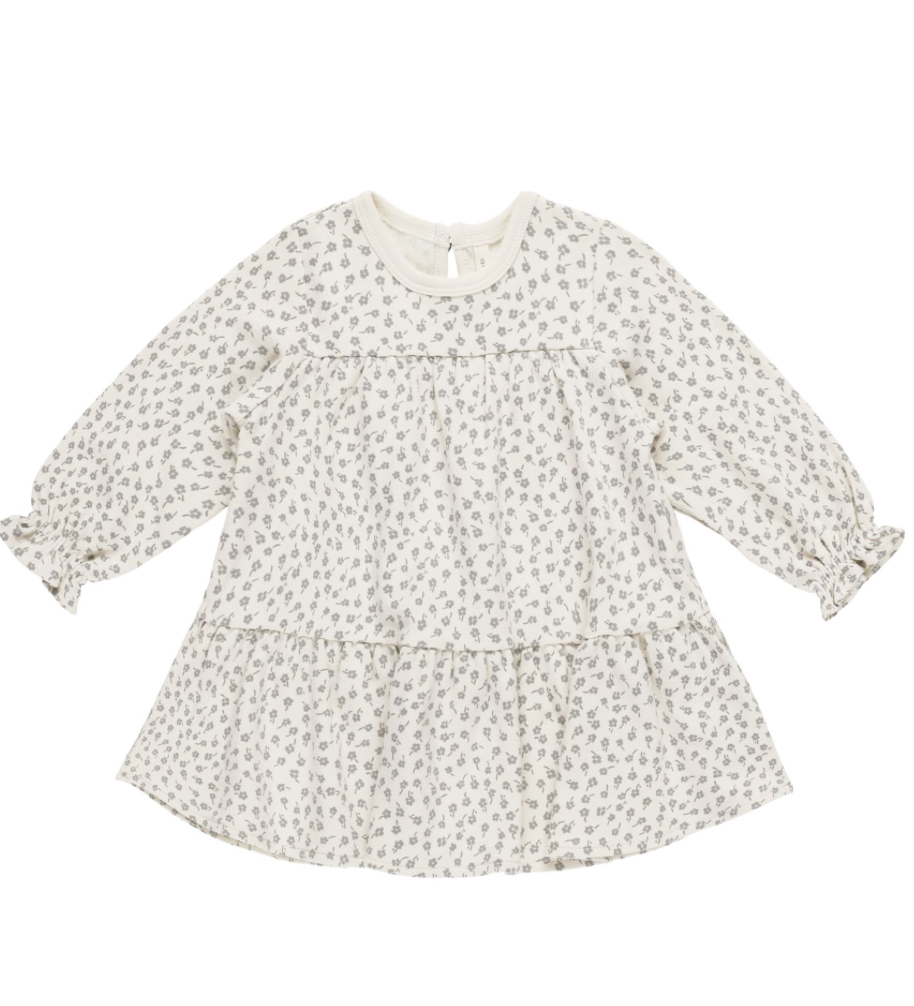 Velvety soft baby dress with tiers and long sleeves, has a coconut button back closure for easy changing as well also. All baby sizes includes our gathered bloomers!