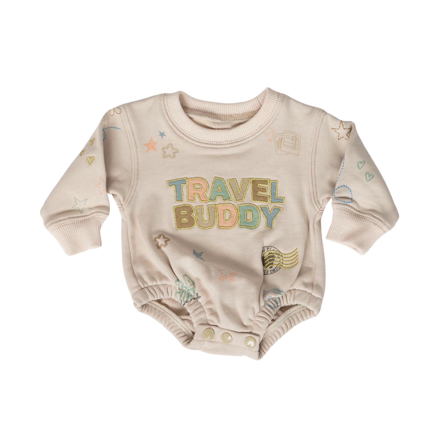 Get cozy with the Travel Buddy Sweatshirt Onesie in Almond! This sweatshirt onesie is your perfect travel companion, combining comfort and style. Say goodbye to bulky layers and hello to ultimate coziness. Ideal for lounging, napping, or long flights (and everything in between). One piece, endless possibilities! Pair with our kids sweatshirt and women's vacay mode sweatshirt