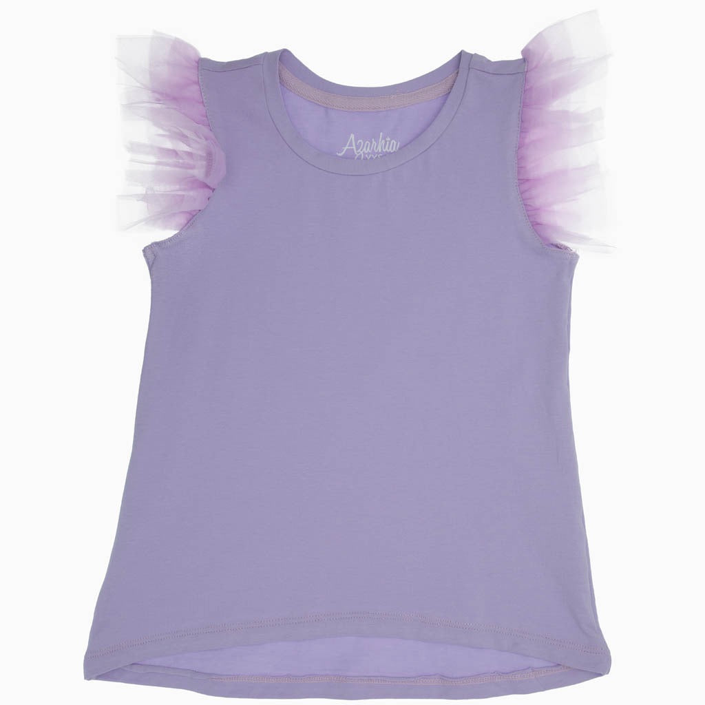 Great classic fit with tulle ruffle sleeve. 95% cotton 5% spandex for get fit. Looks cute & stylish with any of our shorts or skorts