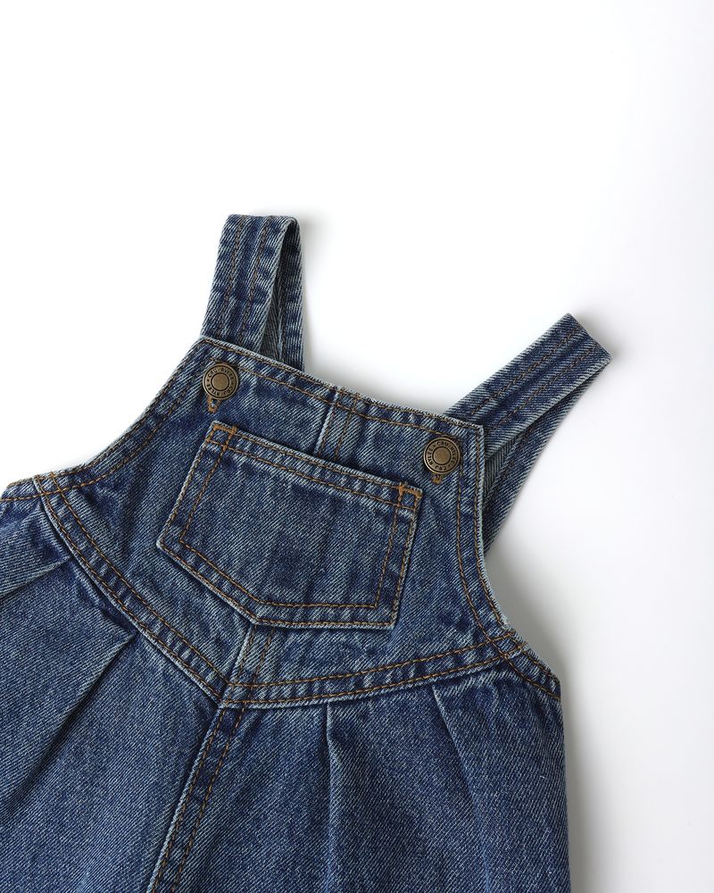 A classic look for little ones. These vintage-inspired overalls feature antique shank buttons, functional pockets, and snaps along the inseam for easy changes.