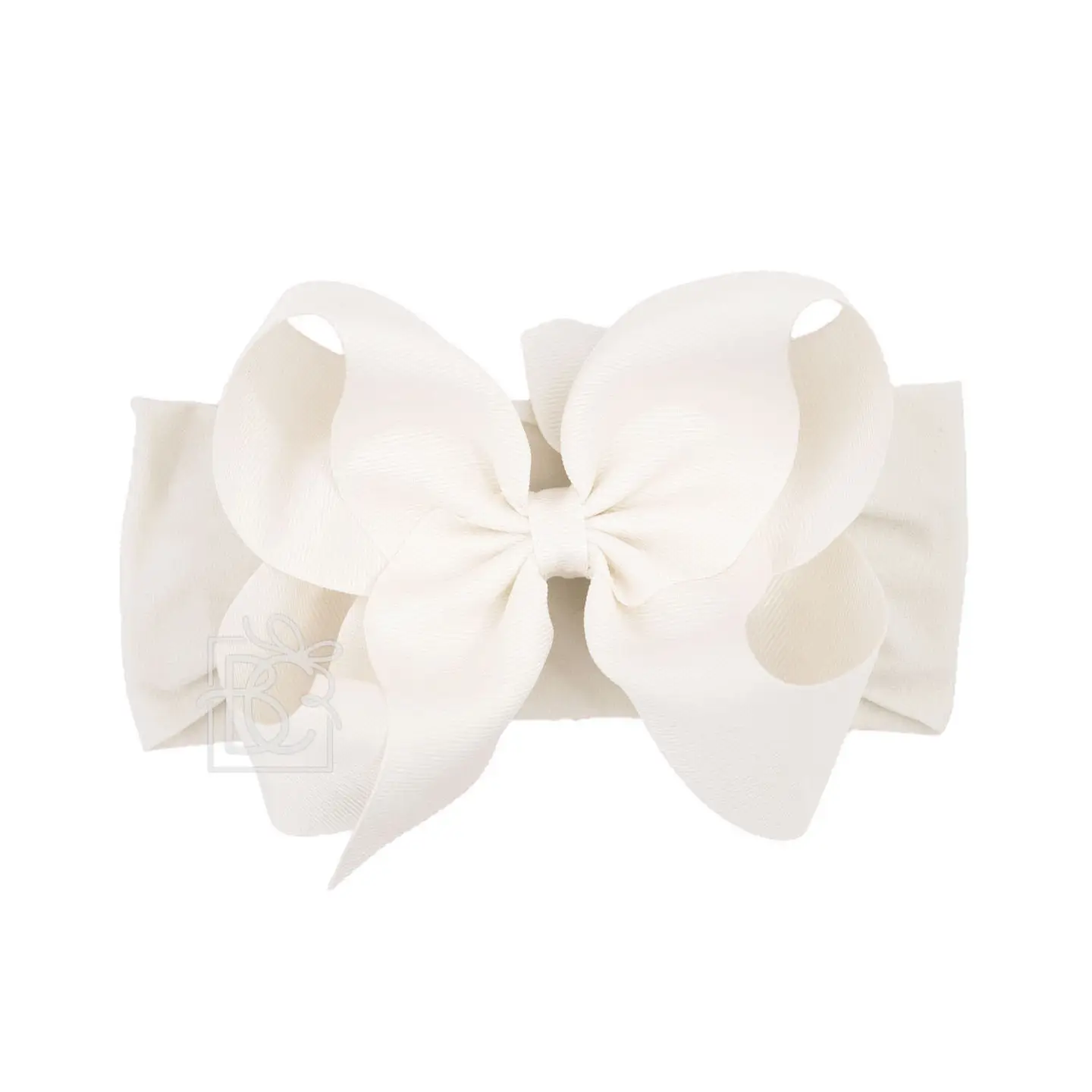 Wide Pantyhose Headband W/Classic Grosgrain Bow | Antique White