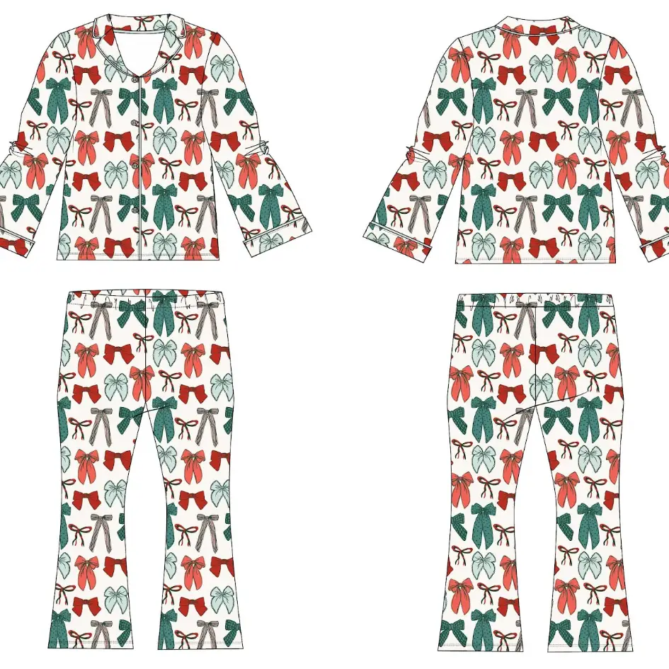 Christmas Plaid Bow Patch Long Sleeve Romper