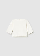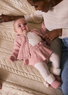 Original three-piece set for newborn girls. Made from soft and pleasant-to-the-touch knit fabric. Long-sleeved cardigan for newborn girls. Round neckline. Front button fastening. Decorative details: openwork patterns and ribbed trims. Long-sleeved T-shirt for newborn girls with elasticated cuffs. Snap-button fastening at the back. Terry-style fabric. Bloomer-style shorts that perfectly complete a charming look for your baby. This set comes in a Newborn gift box ideal for special occasions.