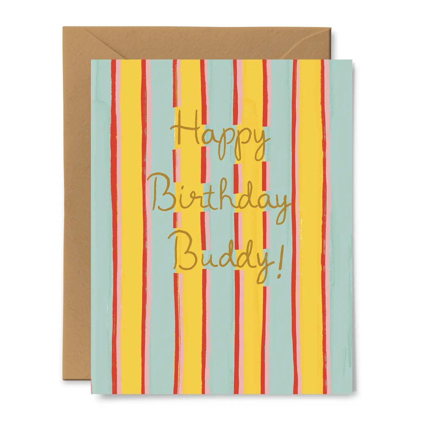 Happy Birthday Buddy! Thick, heavyweight paper means no ink bleed through, and a classic kraft envelope adds the perfect touch.